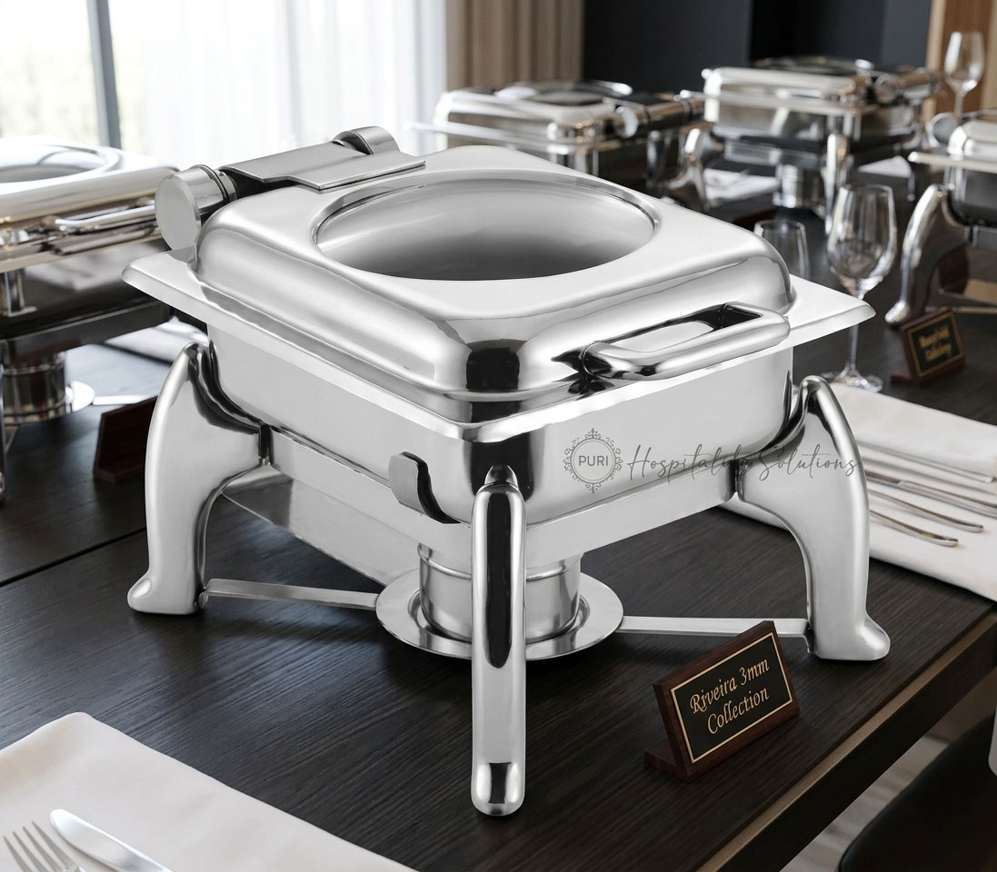 Royale Square Chafer Copper ,Brass & Stainless Steel Hammered/ Matt