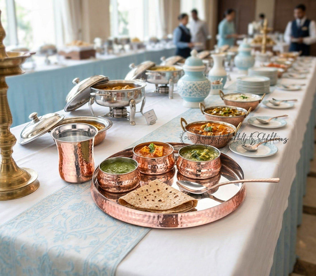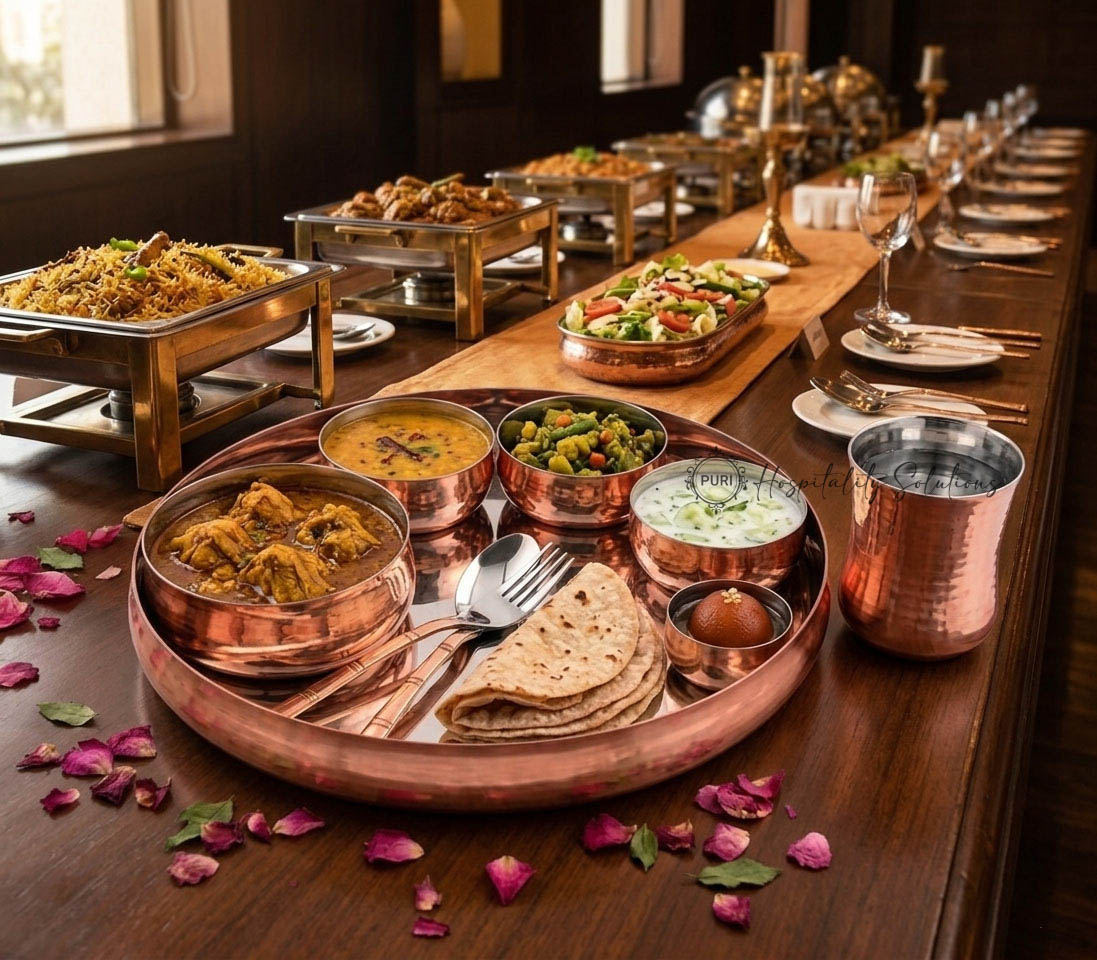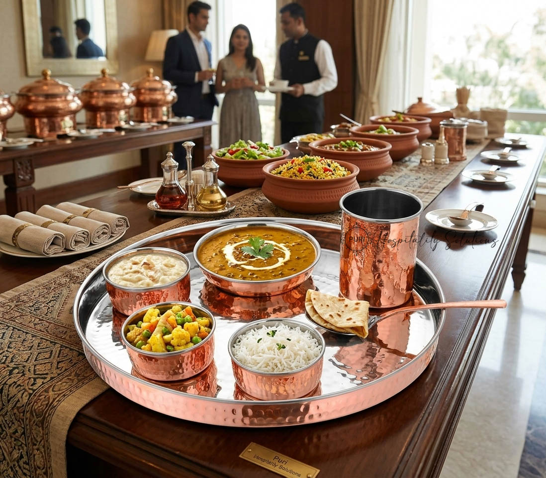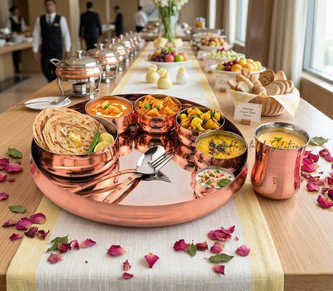 Sovereign 8 Pcs Thali Set-Big Plain SS/Copper