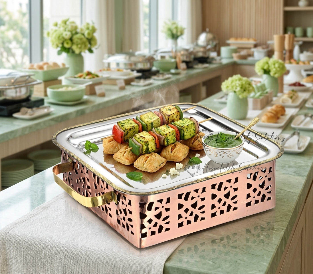 Square Snack Warmer Copper, Brass & SS