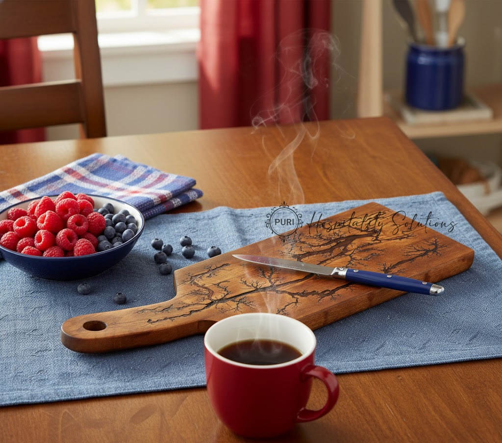Electric Burnt Bat Lifted Handle Acacia Wood/Red Resin