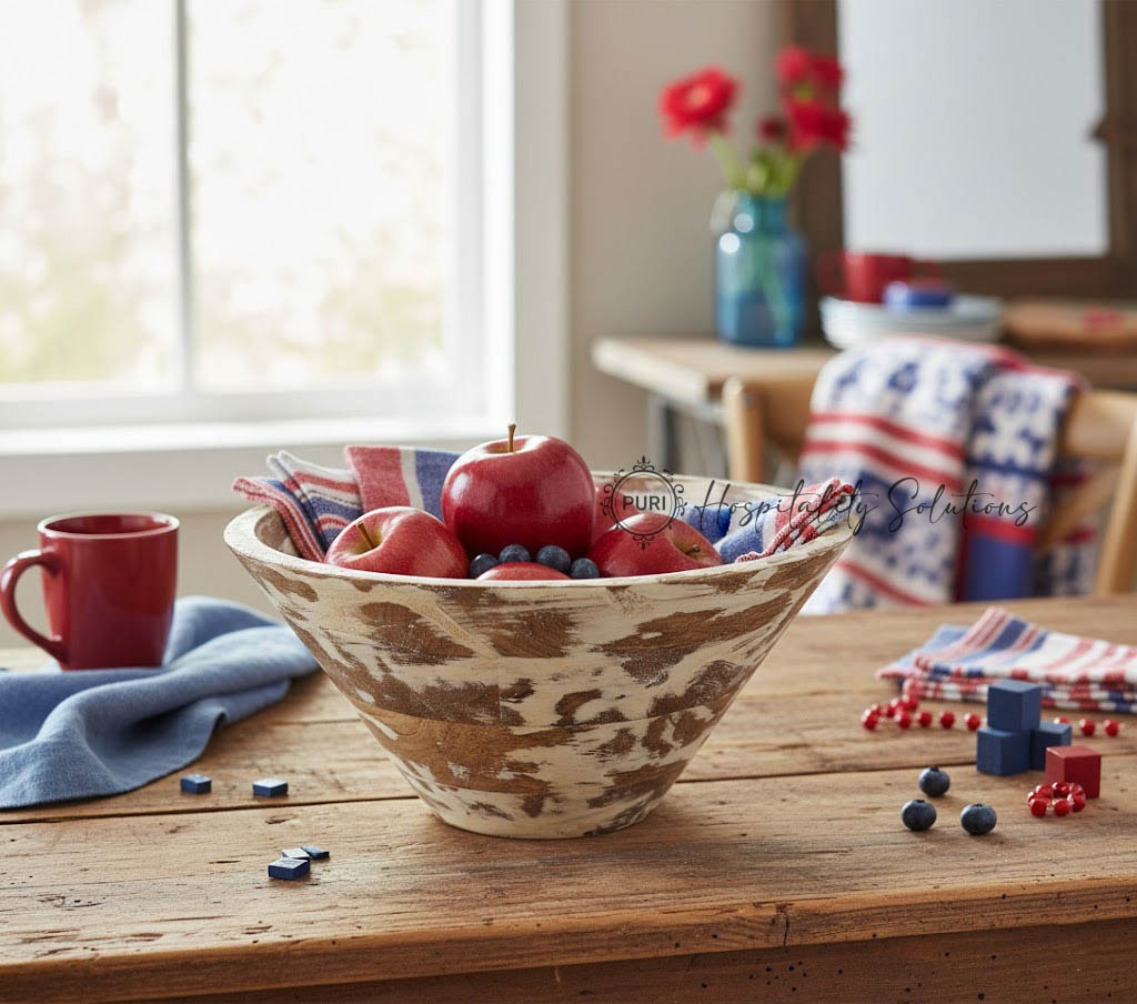Taper Bowl Mango Wood/White Rustic