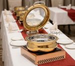 Adeline Gold Chafer Hydraulic Lid With Base Stand Stainless Steel, Brass & Glass Hammered/Polished Gold & Rose Gold PVD