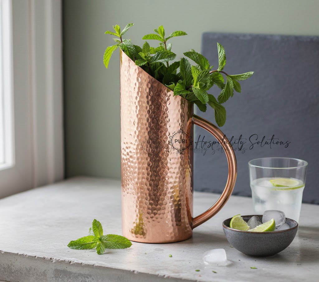 Mughlai Jug-Large (Inside Tin Coated) Copper & Brass (Hammered)