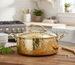 Brass Dutch Pot / Bhagona / Patila Hammered Glossy With Lid And Tin / Kalai Plating Inisde – Premimum Pot For Cooking 5 Liter