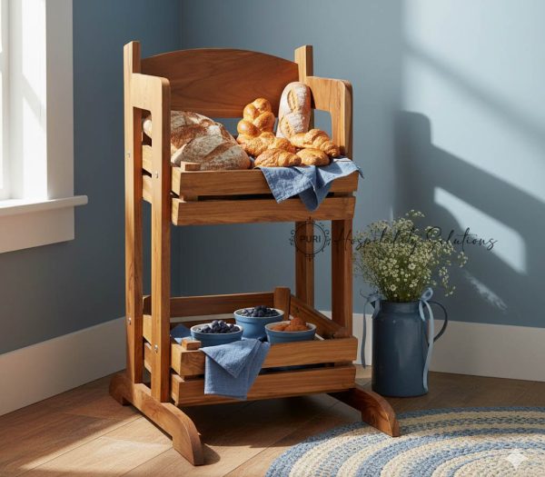 2 Tier Buffet Fruit / Bread Stand Teak Wood / Natural Finish
