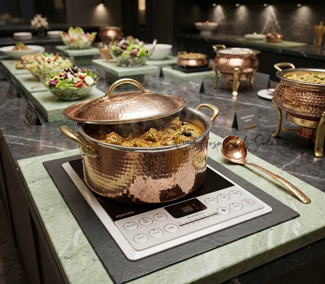 Royale Chafer (Induction Compatible) Copper, Brass & Sta Steel Hammered/Polished (Handmade)