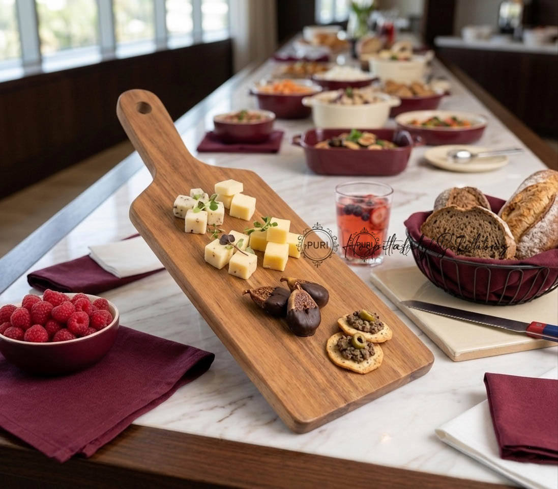 Wine & Cheese Bat With Grooves Acacia Wood/Natural Finish