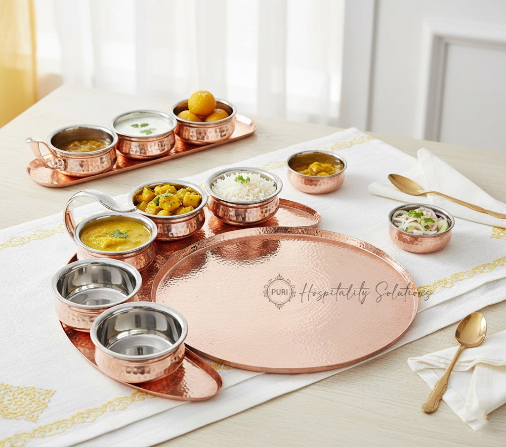1 Moon Plate 40 x 12 x 9 cm, 1 Round Plate 24 x 1.5 cm, 5 Handi Bowl 100 ml 11 x 5 cm
