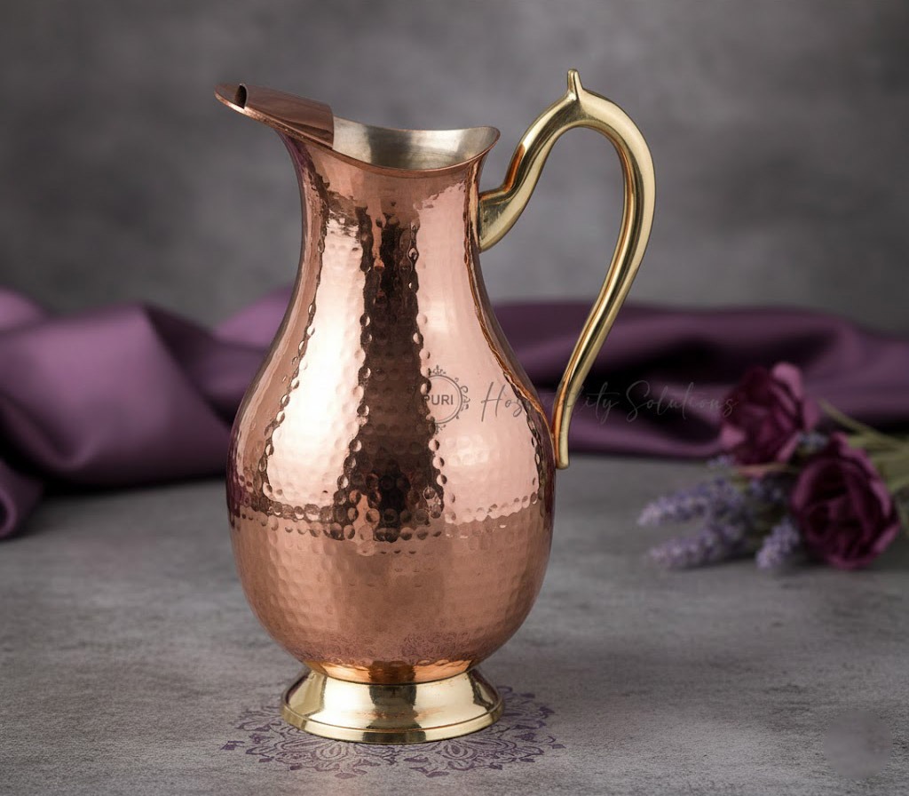 Mughlai Jug-Medium (Inside Tin Coated) Copper & Brass (Hammered)