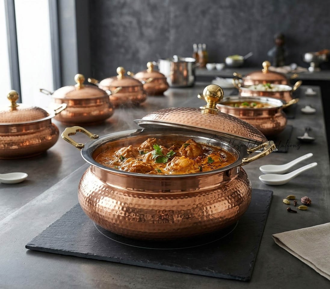 Royale Chafer (Induction Compatible) Copper, Brass & Sta Steel Hammered/Polished (Handmade)