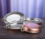 OVAL ENTRÉE DISH EMBOSS HANDLE Copper, SS, Brass