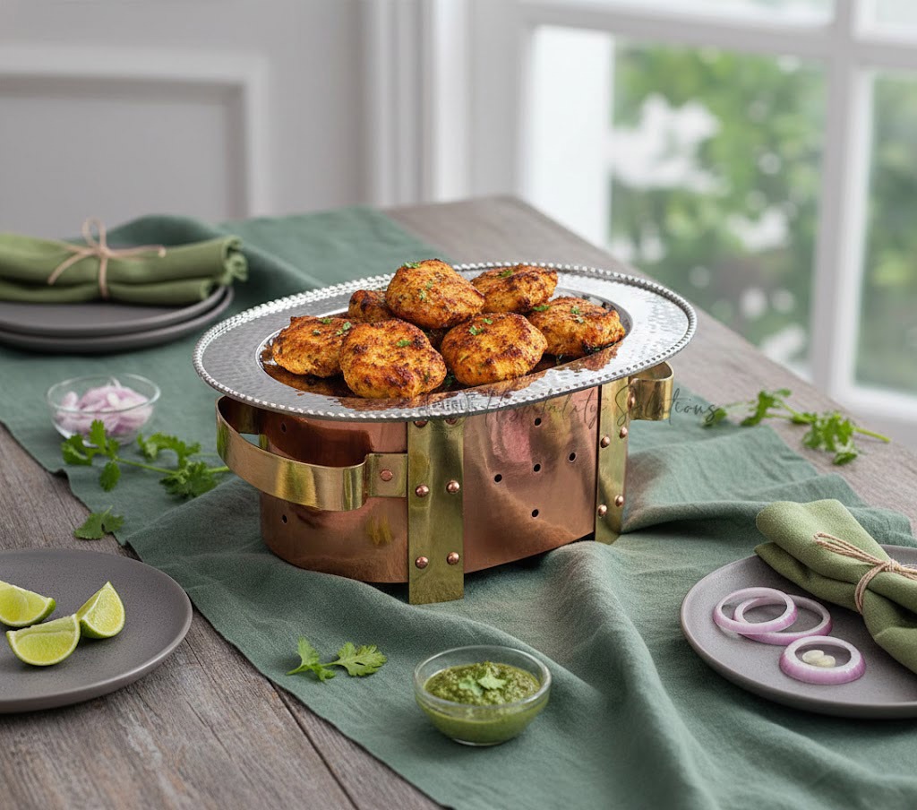 Round Snack Warmer Copper, Brass & SS
