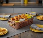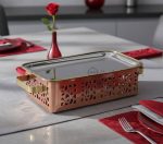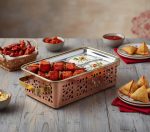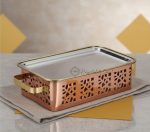 Rectangular Snack Warmer Diamond Cut Copper, Brass & SS