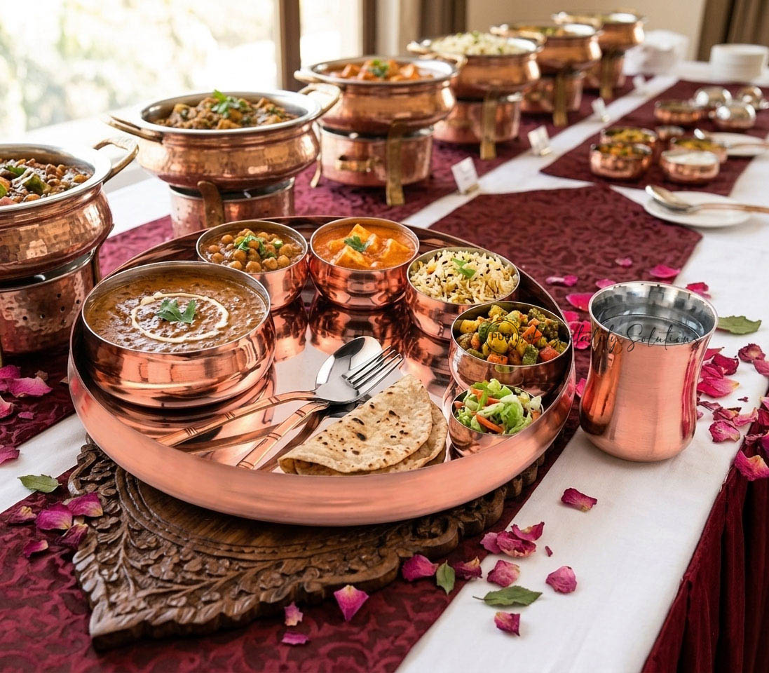 1 Chutney Bowl 6 x 3 cm, 1 Glass 250 ml 8 x 10 cm, 1 Rice Bowl 12 x 3 cm, 1 Spoon 18 x 4 cm, 1 Thali 33 x 4 cm, 3 Veg Bowl 7 x 3.5 cm