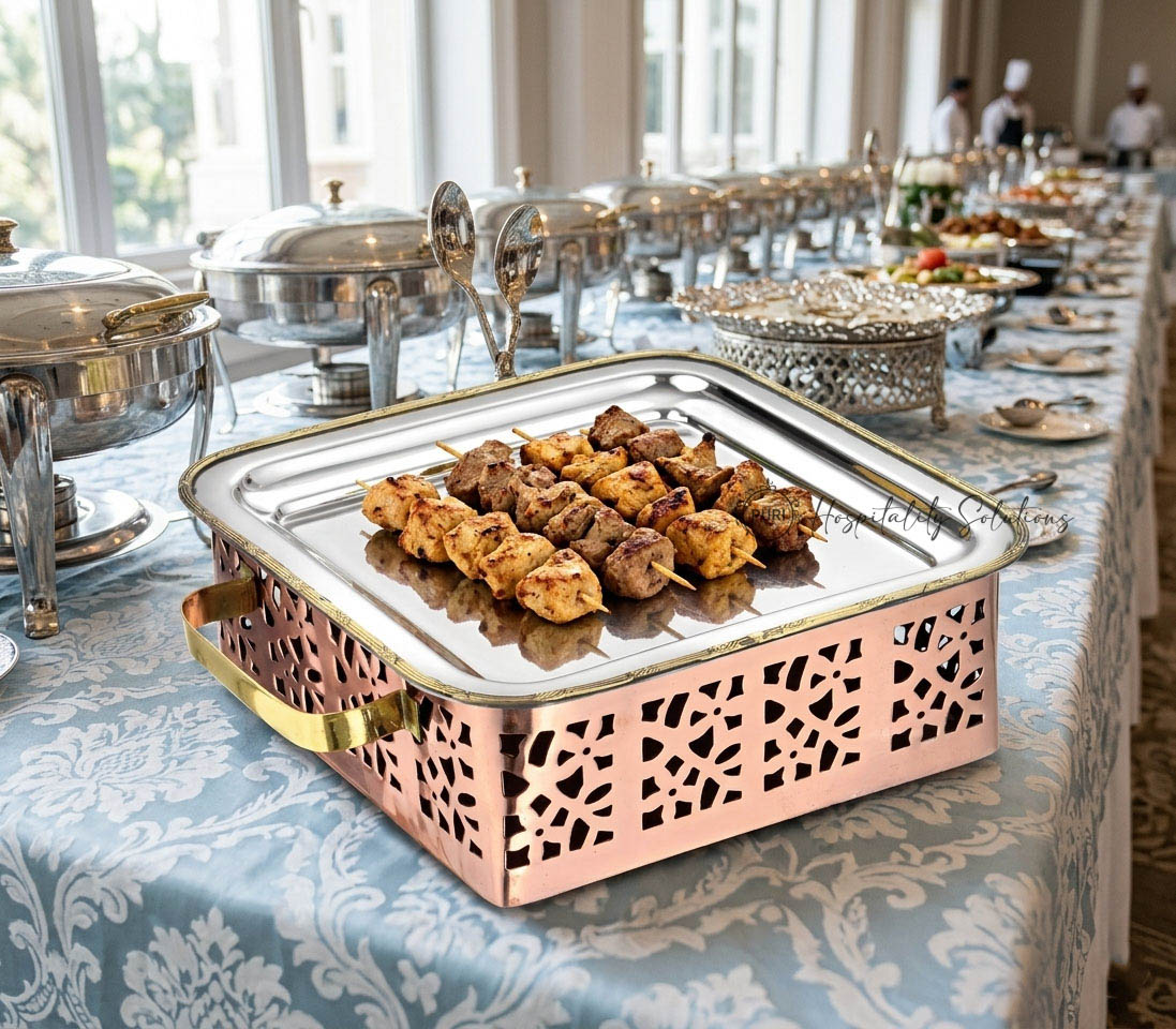 Rectangular Snack Warmer Diamond Cut Copper, Brass & SS